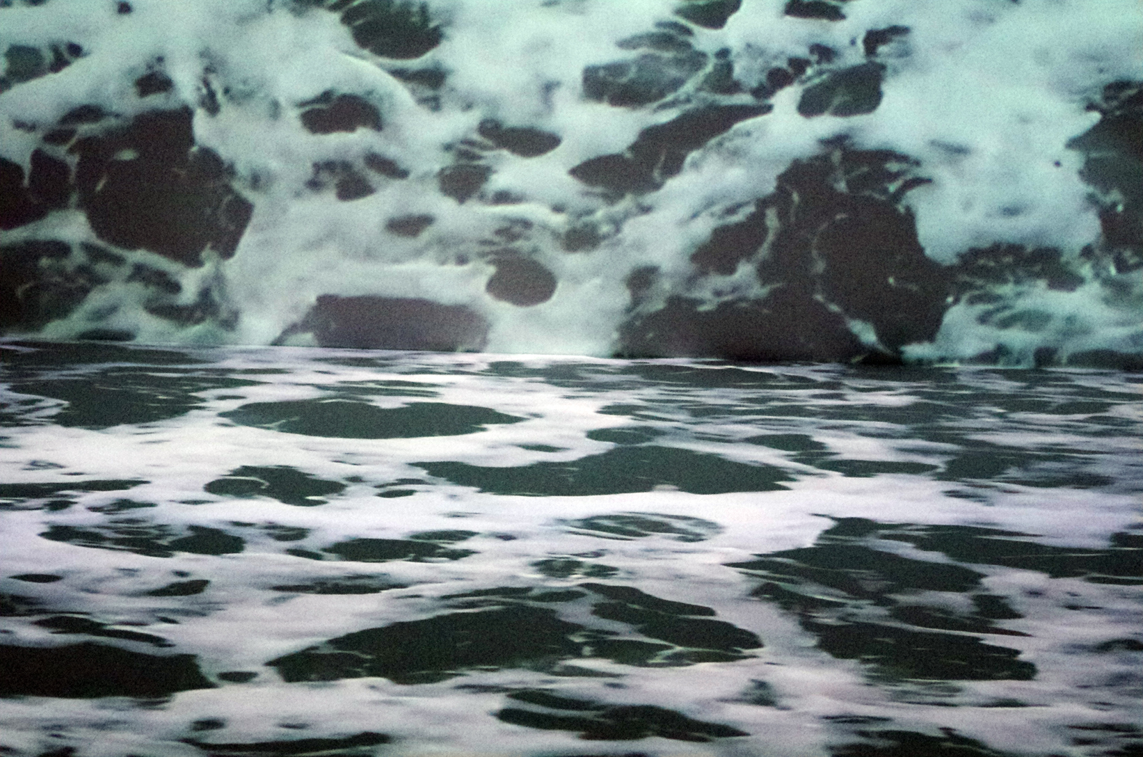 My favourite work was a video installation by Joanna Millett titled ‘Overflow’ which was suitably housed down on the the dark of the basement. The mesmerising work featured joined horizontal and vertical viewpoints of sea water. Simple but very effective.