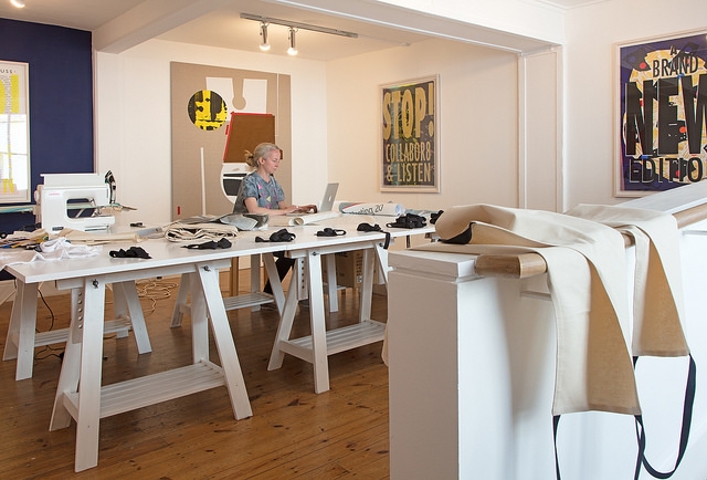 In Plymouth Phillips has made a major new installation that takes over the multiple galleries and social spaces of Plymouth Arts Centre to turn them into a production space exploring the intersection of the personal and the political where she will work live in the exhibition with groups of women from the city to produce printed textiles to represent their voices and concerns.